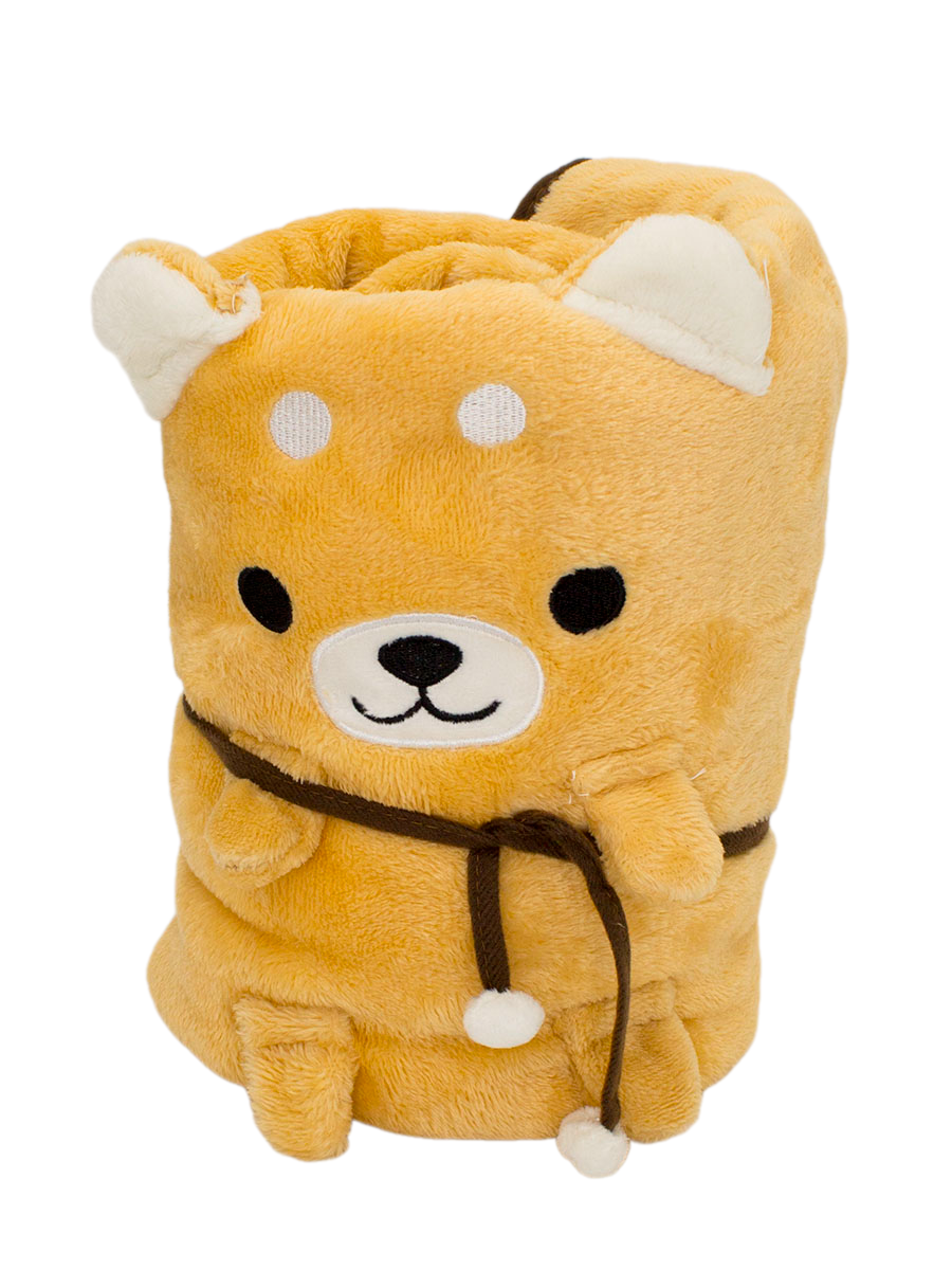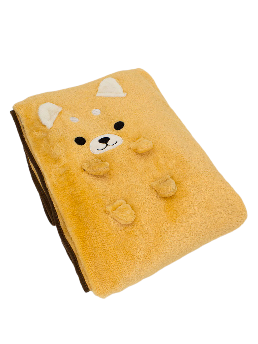 Мягкий плед согреет вас даже холодной зимой, а милый шиба ину будет улыбаться вам всегда! Плед можно сложить и завязать специальными завязочками, чтобы плед было удобно хранить или поставить его в комнате. Размер пледа 97х166см (ШхД), что позволяет полностью укрыть ребенка, если он задремал, либо нежиться самим под пледиком.Характеристики