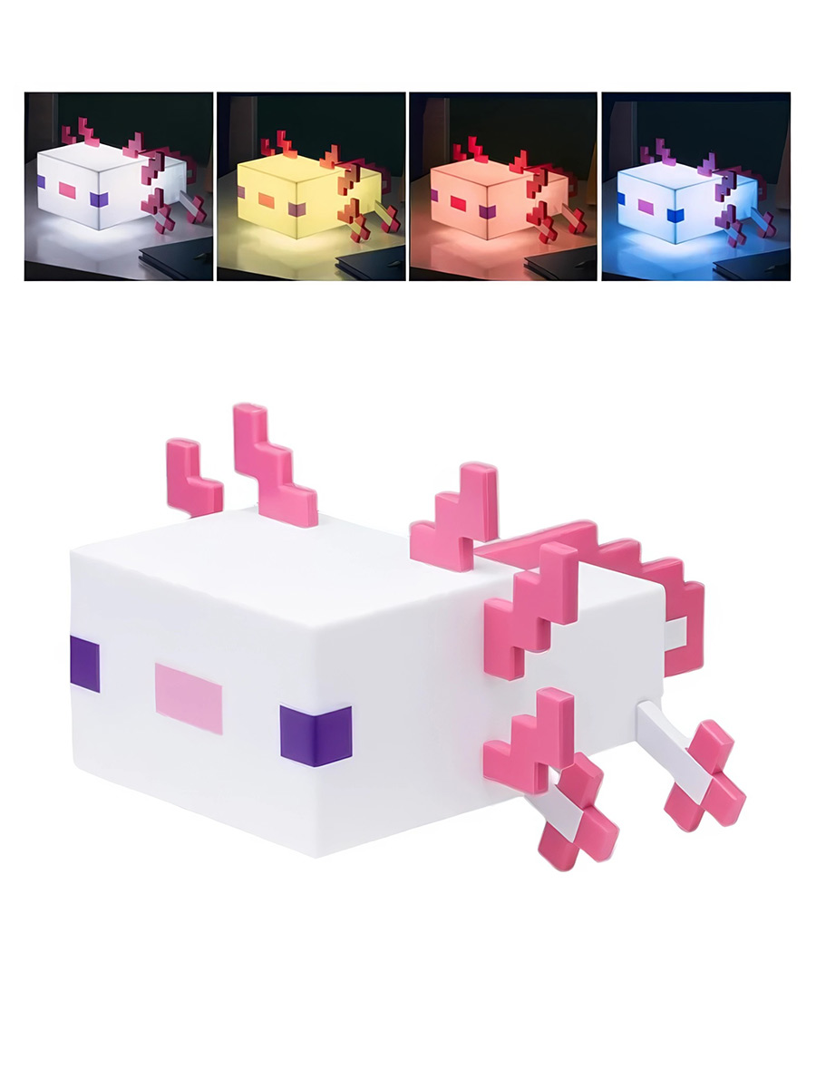 Светильник Minecraft Axolotl выполнен в образе одного из нейтральных героев Майнкрафт - Аксолотля. Днем, это игрушка или коллекционная фигурка, а ночью - светильник-ночник, создающий уют в детской комнате. Ни один любитель мира Майнкрафт не останется равнодушным при виде этого настольного ночника. Игрушка ночник Minecraft станет отличным подарком для фаната или игрока любого возраста. Детский ночник для сна изготовлен из приятного на ощупь, нетоксичного пластика. Светильник абсолютно безопасен, светится светодиодами, которые не нагреваются. Не нужно беспокоиться о запутанных проводах, поскольку встроенная литиевая батарея емкостью 800 мАч может работать непрерывно до 6 часов и оснащена удобным интерфейсом зарядки Type-C. Включается ночник при помощи сенсорного выключателя. Лампа ночник имеет два режима свечения и 5 оттенков света, его можно устанавливать в любое место на пол, стол или взять с собой в кровать.Что нужно знать о детском ночнике Майнкрафт: