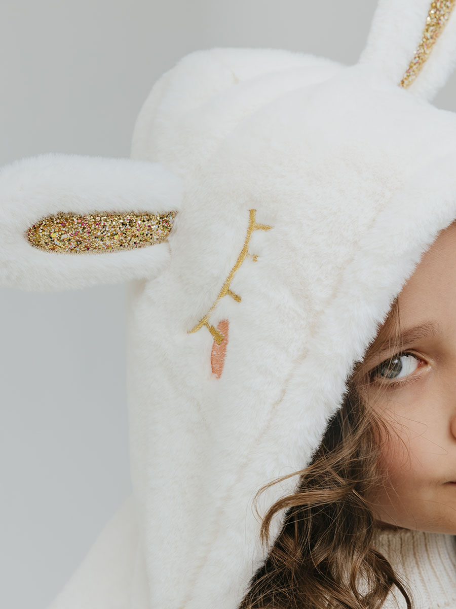 Детская шапка Кролик с блестками белая