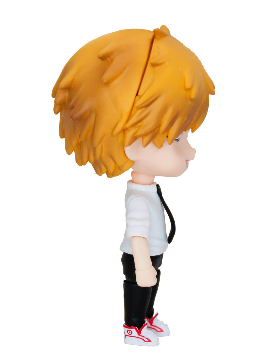 В комплекте с фигуркой Денджи идут сменные детали для воплощения нескольких образов персонажа. Например, голова-бензопила и несколько лиц Денджи с разной мимикой.