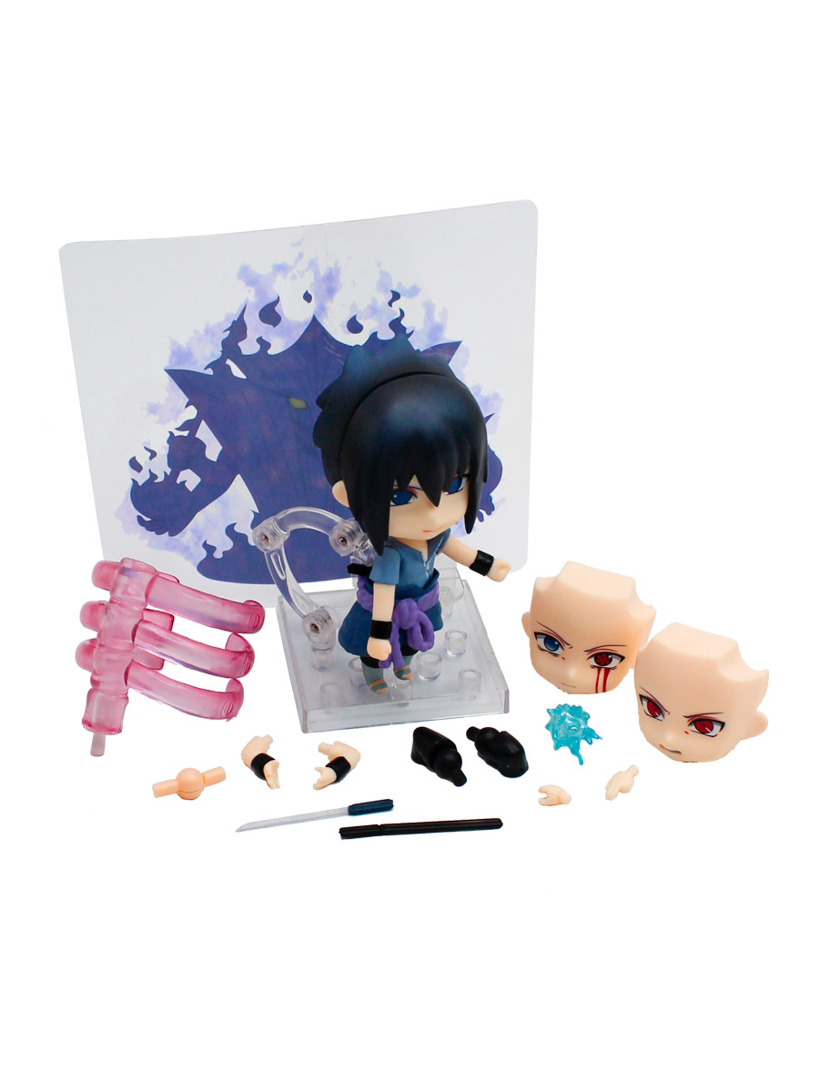 В комплекте с фигуркой nendoroid Саске Учиха идут сменные детали для воплощения нескольких образов персонажа. Например, несколько лиц Саске с разной мимикой.