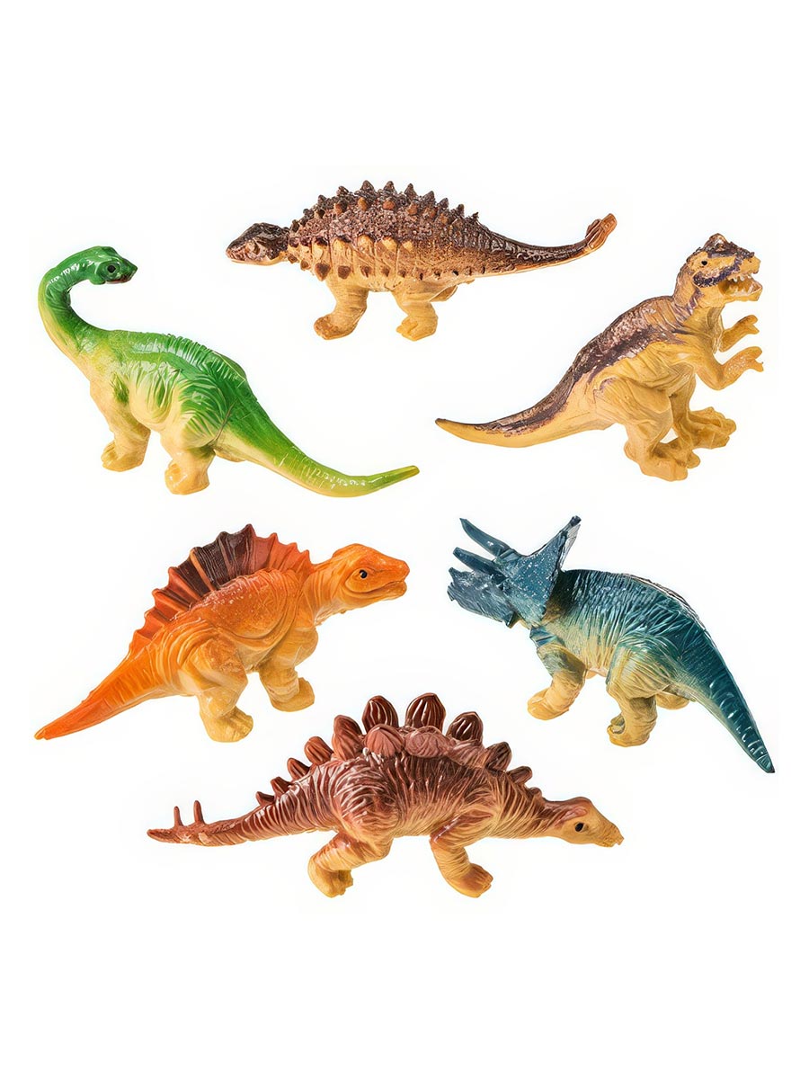 В наборе представлены: тираннозавр, гигантозавр, стегозавр, трицератопс, велоцираптор, брахиозавр и другие виды.