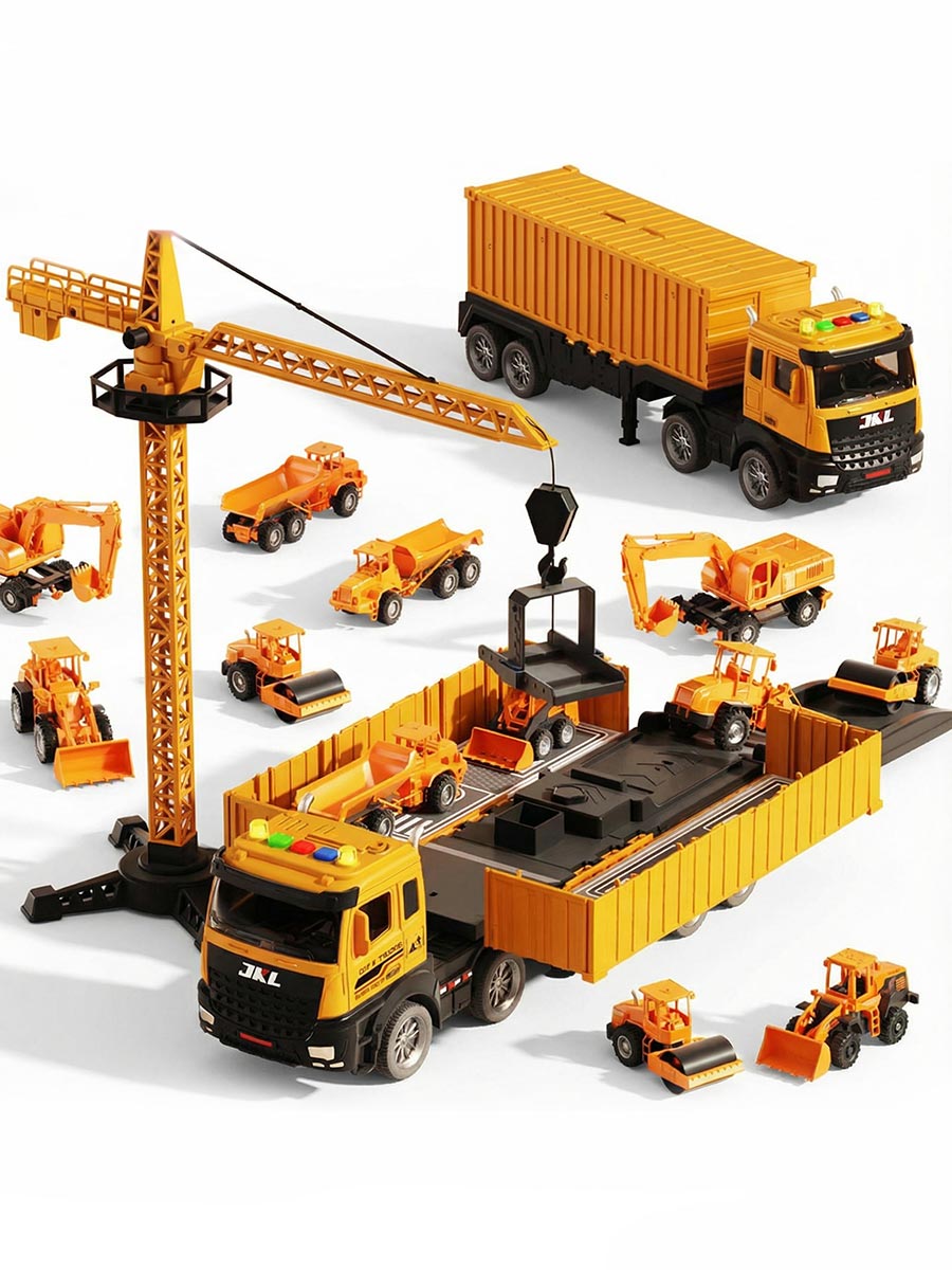 Игровой набор машинок «Строительная техника с краном»: Мир масштабных проектов у вас в руках!Запустите масштабную стройплощадку прямо у себя дома с этим невероятно детализированным и функциональным набором! Этот комплекс - не просто коллекция машинок, а полноценный игровой мир, где каждый элемент продуман для увлекательных сценариев.