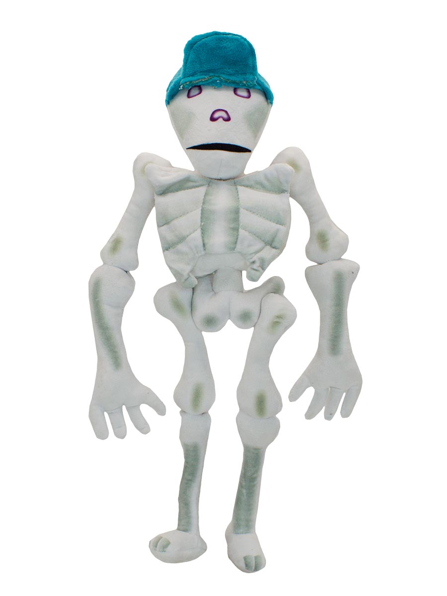 Скеле-бро он же Боб - это высокий человеческий скелет с серой кепкой, который окружен мухами.