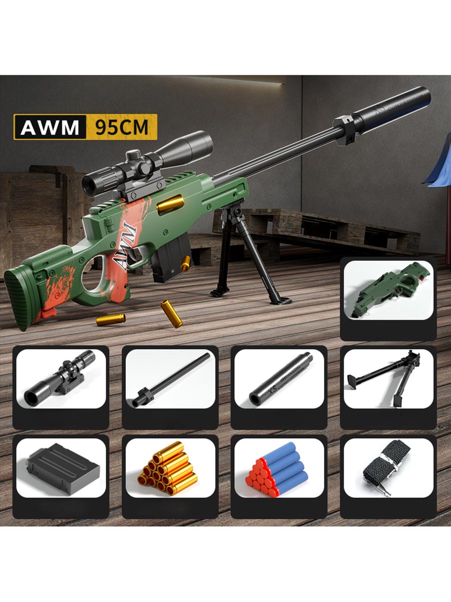 Снайперская винтовка AWM с мягкими пулями 95 см.Идеальное игрушечное оружие для любителей тактических игр! Эта реалистичная снайперская винтовка вдохновлена дизайном PUBG и Стандофф 2 оружия, обеспечивая полное погружение в игру.
