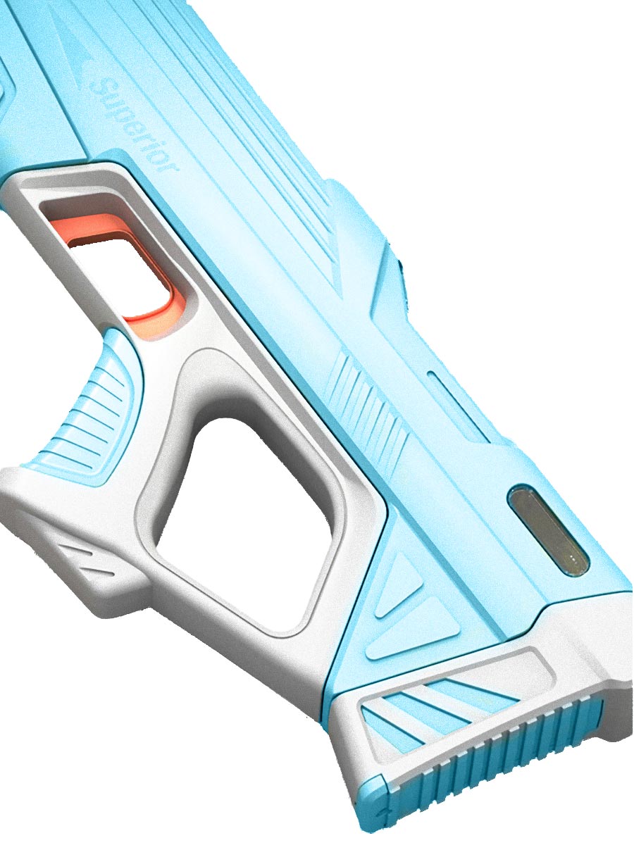 - Автоматическая дозаправку водой. Достаточно опустить носик бластера в воду и нажать на курок.