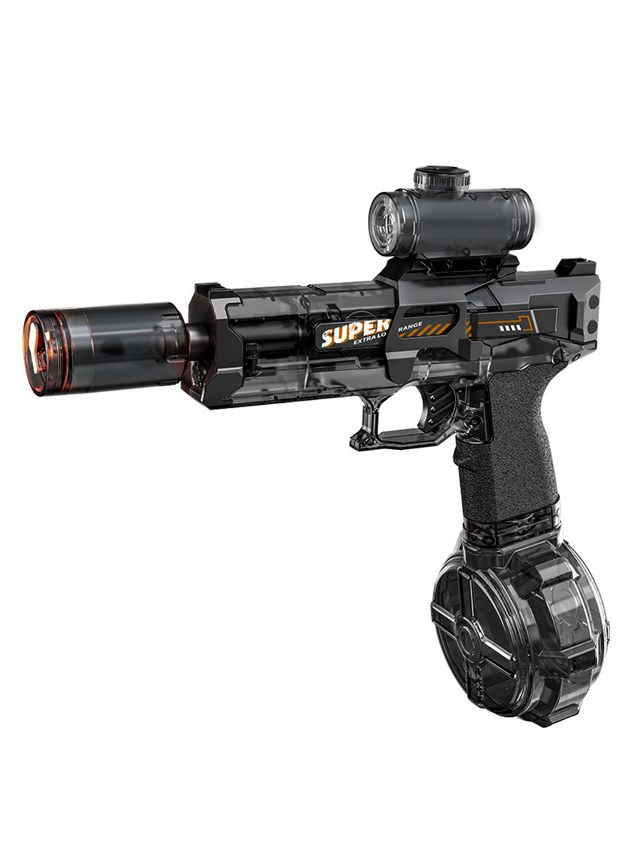Современный водяной пистолет со световым эффектом отличается высоким качеством и мощностью, что позволяет ему стрелять водой на достаточно большие расстояния - 7-8 метров.
