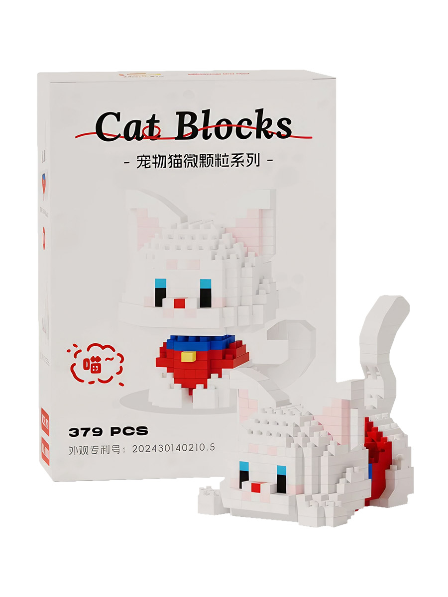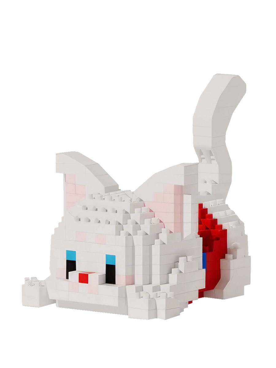3D-конструктор – качающая головой объемная фигурка белого котенка с красным платочком на шее. Конструктор содержит 379 деталей и собирается в 2-х вариантах: котик сидит и котик лежит. Размер собранной фигурки в сидячем положении: 6х5,2х7.4 см. Размер собранной фигурки в лежачем положении: 6х8,4х7 см.