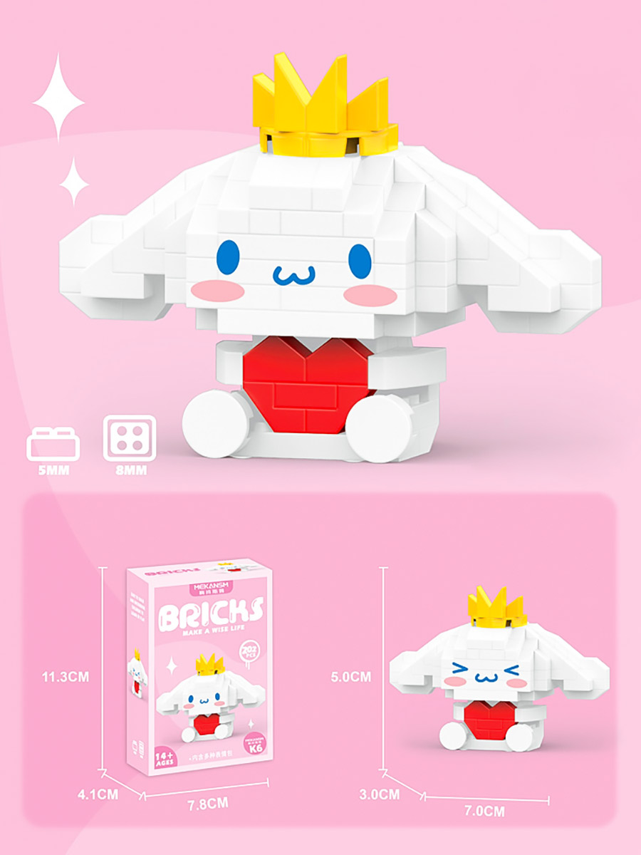 Щенок Синаморол - милый зверек из вселенной My Melody, который никого не оставит равнодушным. 3д-конструктор Cinnamoroll содержит 202 детали. Высота фигурки в собранном виде составляет - 5см.