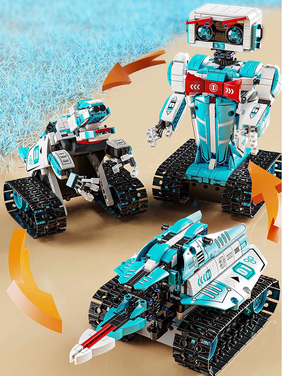 Конструктор «Робот-трансформер 3в1» на пульте управления — отличный подарок для мальчика! Он развивает навыки инженерии, логическое мышление и творчество. Этот детский конструктор позволяет создать уникального робота и оживить его с помощью дистанционного управления. Конструктор предусматривает три разных робота в одном наборе – собрать одновременно можно один вариант по выбору.Конструктор содержит 698 деталей, совместимых с Лего. Детали конструктора легко соединяются, что позволяет ребёнку самостоятельно собирать и модифицировать робота, развивая свои творческие способности. У конструкции робота предусмотрены шарнирные соединения для изменения положения рук, головы и туловища. Это расширяет поле для фантазии в игре.
