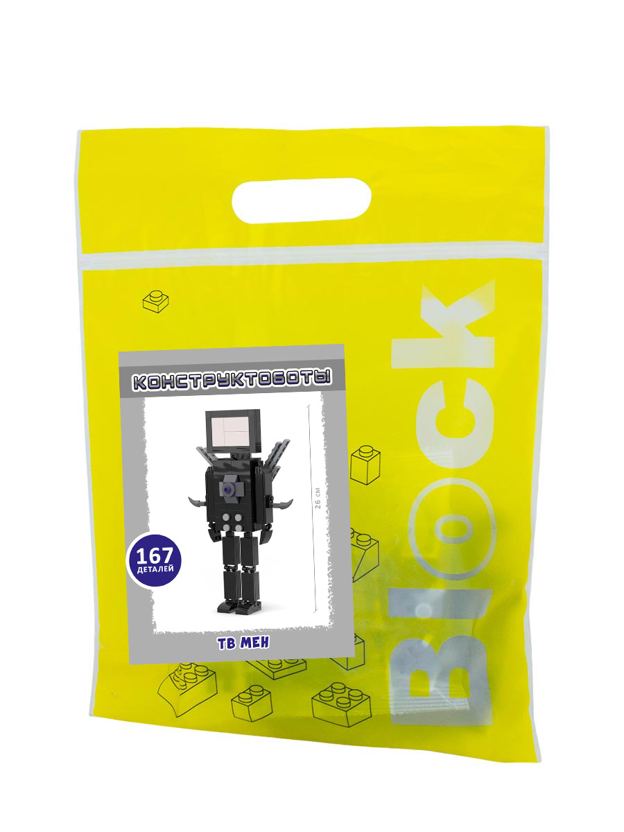 Изготовлен из высококачественного АБС-пластика, нетоксичен, не имеет запаха, безвреден для здоровья детей. Содержит 167 деталей, с помощью которых можно собрать конструктобота ТВ Мена. У собранной фигурки подвижные руки, ноги и голова и т.д., что добавляет реализма и позволяет использовать ее в игровом процессе.
