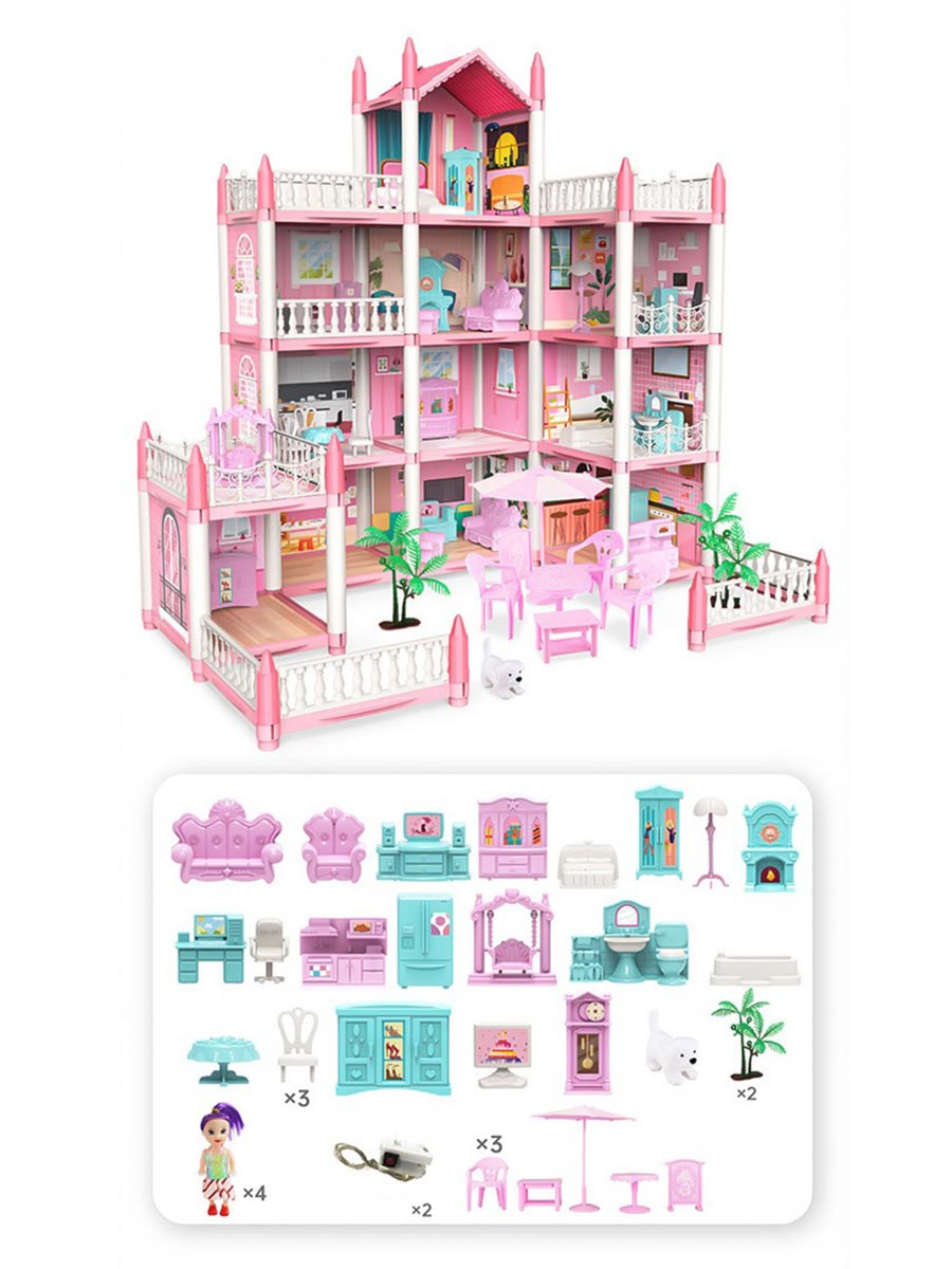 купить Кукольный домик с подсветкой 14 комнат розовый оптом со склада в Москве с доставкой в любой регион.