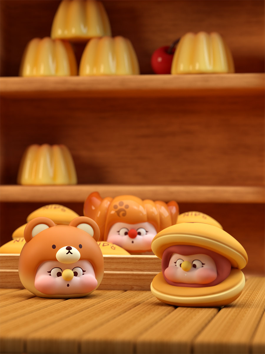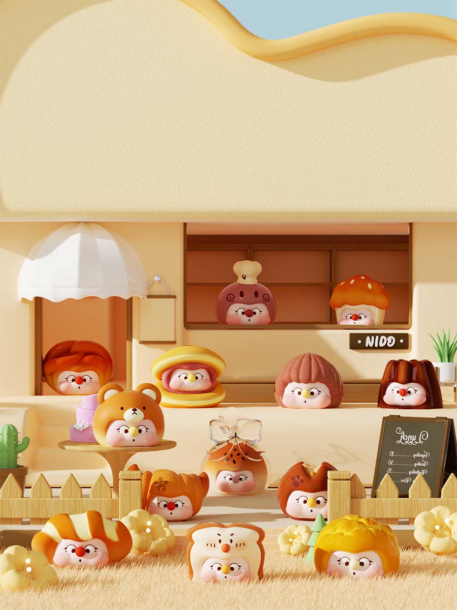 Благодаря своему любопытству к миру робкий Нидо набрался смелости покинуть лес и отправиться в город в одиночку. Нидо теперь живёт в мире, где все существа, будь то люди или животные, равны и каждый может достичь счастья через упорный труд.Фигурки в сюрприз боксах из серии Nido Timid mini beans series это 14 кавайных фигурок, которые представляют собой разнообразную выпечку с милыми личиками.