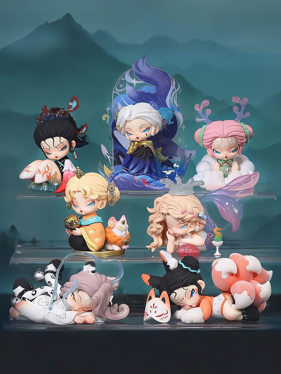 О коллекции Древнее Божество blind box: 6 базовых дизайнов – драконы, фениксы и боги в милом исполнении;