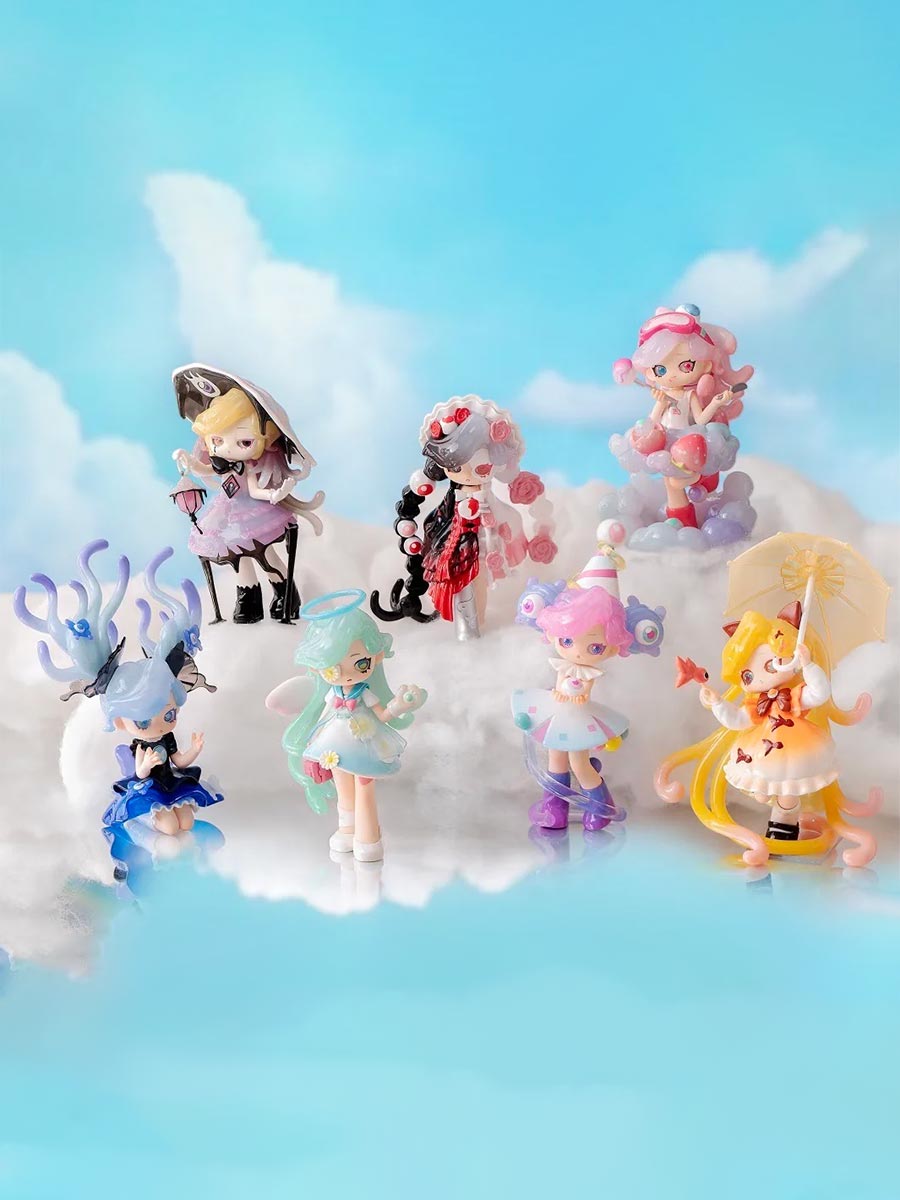 Эти крупные для формата слепых коробок фигурки высотой 14,7–18,8 см (в зависимости от сложности головного убора или аксессуаров) выполнены из высококачественного ПВХ и АБС-пластика. Некоторые элементы имеют полупрозрачную текстуру, создающую эффект призрачности и невесомости - словно сон, который вот-вот растает при пробуждении. В комплекте с каждой фигуркой идёт коллекционная карточка персонажа.