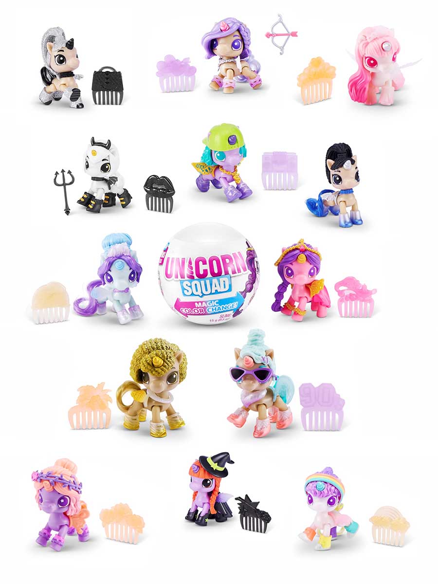 Соберите всю коллекцию из 13 волшебных единорогов, меняющих цвет.