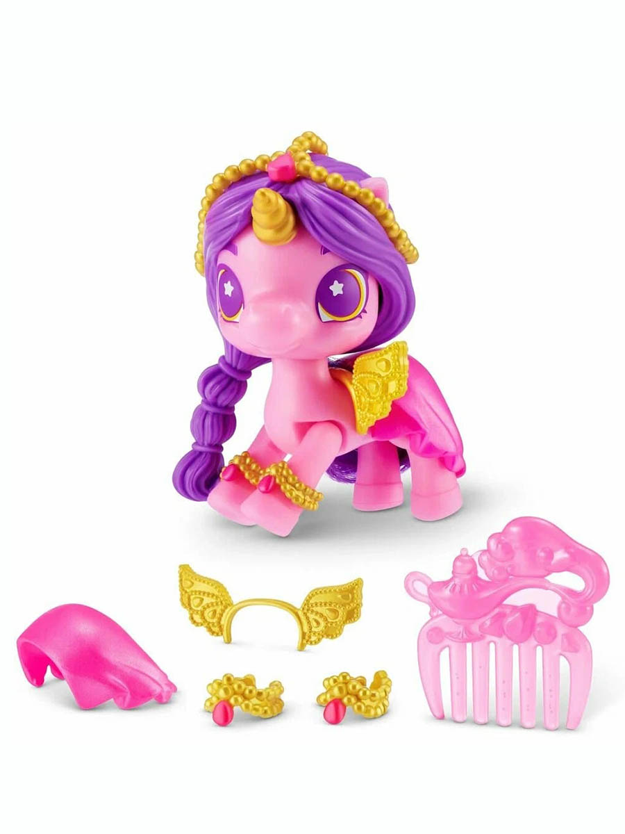 Любая юная принцесса будет рад такому содержательному подарку. Ведь можно создавать новый стиль для своего отряда единорогов каждый день. Расчесывать длинную гриву специальным гребнем и украшать новых друзей модными аксессуарами.