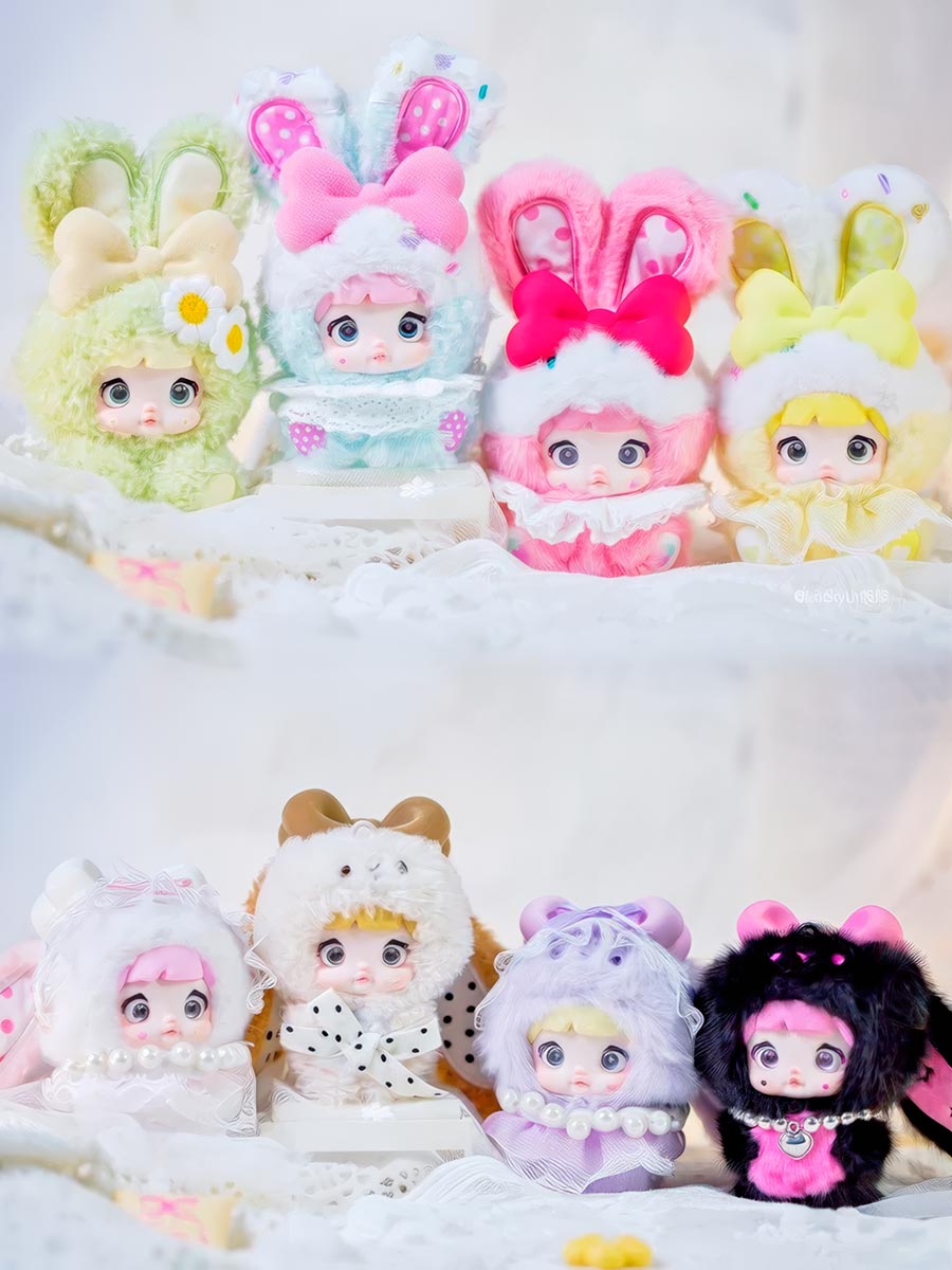 Познакомьтесь с очаровательной зайкой Nommi Baby из коллекции Sweetheart Bunny — самой милой и сладкой серии виниловых плюшевых игрушек с подвесом! Каждая игрушка в этой коллекции вдохновлена любимыми десертами: от воздушного мусса до фруктовых конфет. Нежные пастельные оттенки, трогательные выражения мордочки и аккуратные детали делают эту зайку идеальным спутником для всех, кто ценит уют и эстетику.