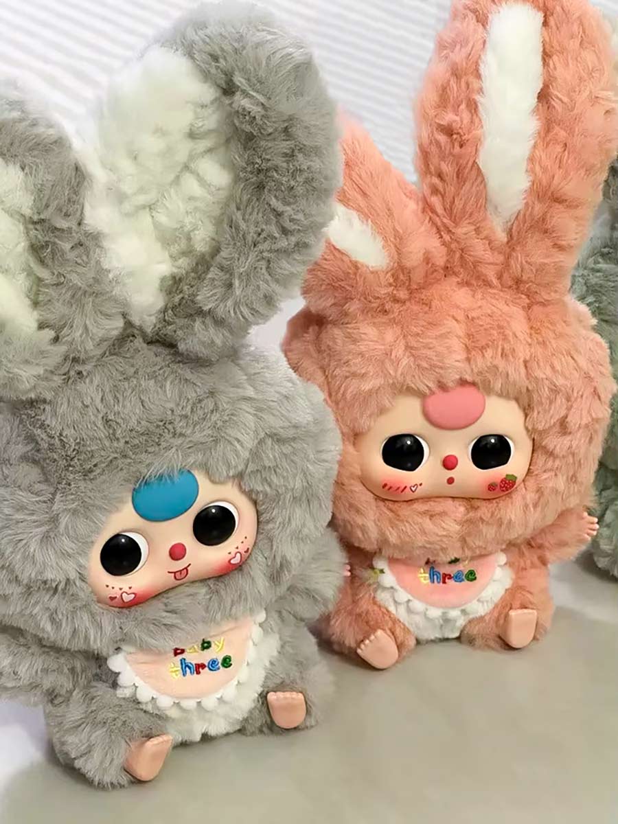 Серия Baby Three Lily Town Rabbit surprise box, это 10 кавайных мягких игрушек, высотой 23см. Сшитые из мягкого и яркого плюша, они обладают множеством интересных деталей и стилизованы под образы милых кроликов.Эта серия является частью линейки Baby Three в формате blind box. Blind box – формат, в котором игрушки продаются в непрозрачных упаковках. Сюрприз – основа блайнд-боксов. Что достанется именно вам – никому не известно. В серии 8 обычных дизайнов и 2 секретных. Секретные персонажи попадаются достаточно редко. Только в одном случае из 96 можно его встретить. Удачи!