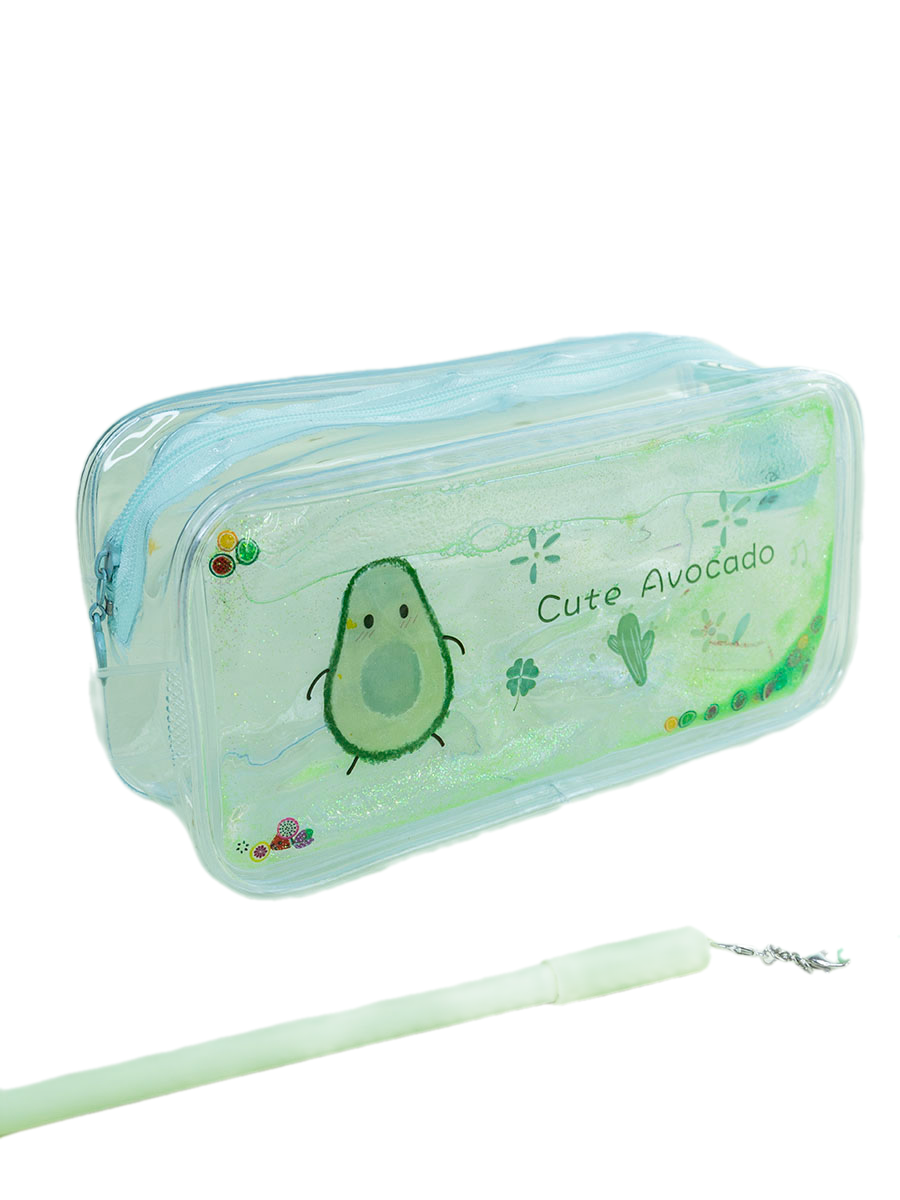Пенал с жидкостью и блестками Авокадо без косточки прозрачный