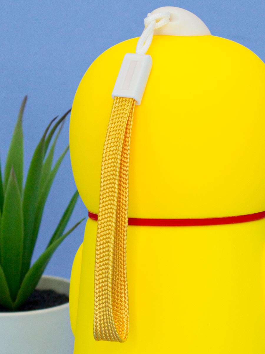 Бутылка для воды в виде уточки с розовыми щечками с ремешком от бренда Михи Михи - это стильная, яркая и удобная бутылка, которая порадует любого поклонника знаменитой уточки.Вся внешняя часть питьевой бутылки произведена из приятного на ощупь и яркого, качественного пластика. Благодаря ему спортивная бутылка не скользит в руках и имеет удобную форму. Внутренняя часть изготовлена из стекла. Поэтому наполнять термобутылку можно как прохладительными напитками, так и согревающими.