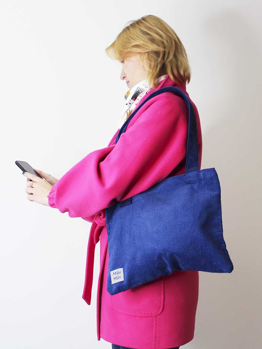 купить Сумка шоппер на плечо вельветовая синяя оптом со склада в Москве с доставкой в любой регион.