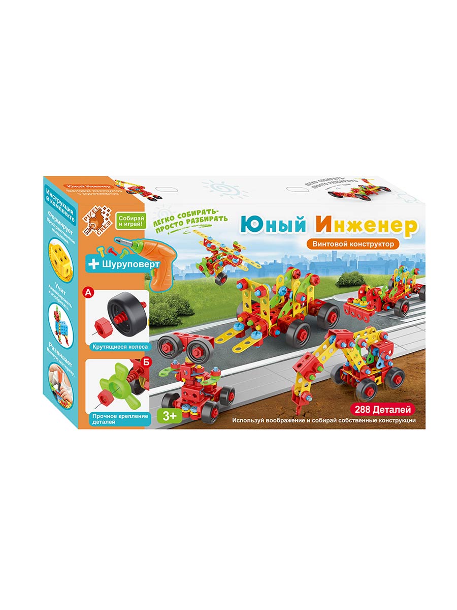 Винтовой конструктор с шуруповертом Юный Инженер, 288 деталей