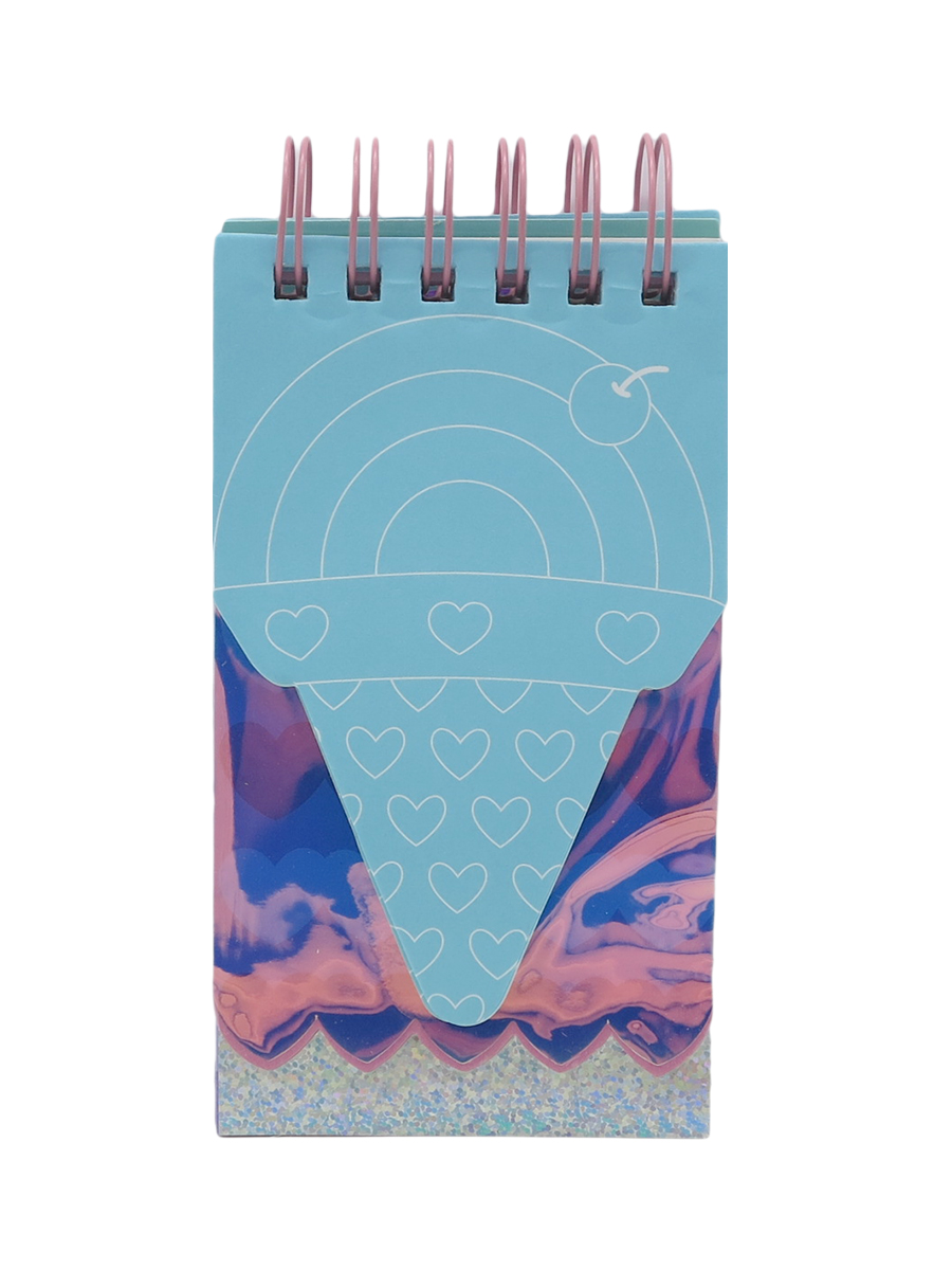 Яркий, мягкий и привлекающий внимание блокнот на кольцах с вышивкой Мороженое- прекрасный компаньон в учебе, надежный хранитель самых сокровенных мыслей и наблюдений, один раз записав в него свои записи, вы уже не сможете с ним расстаться! В блокноте 120 листов с разными принтами и разлиновкой.Характеристики
