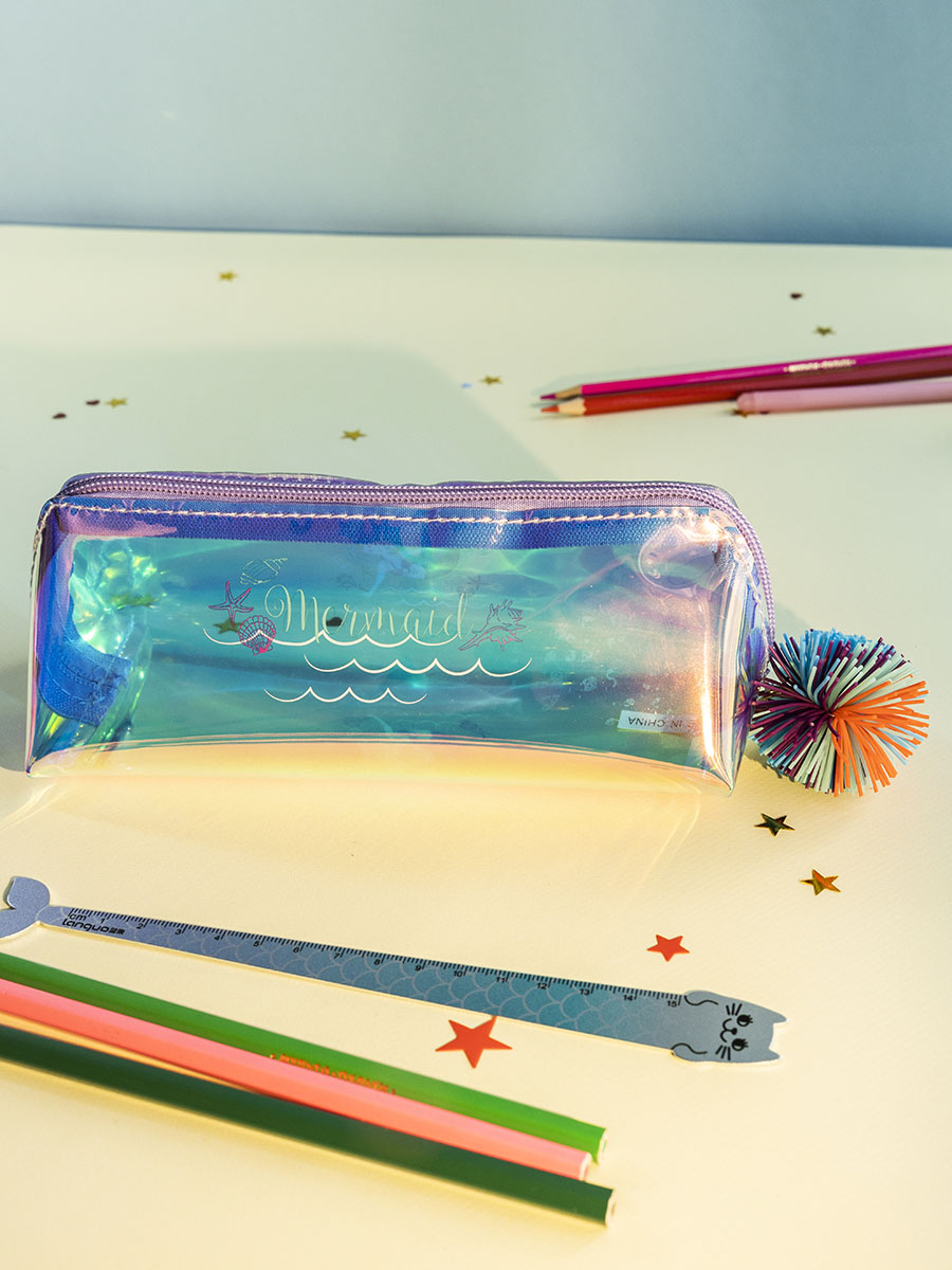 купить Пенал Русалочка с помпоном фиолетовый перламутр оптом со склада в Москве с доставкой в любой регион.