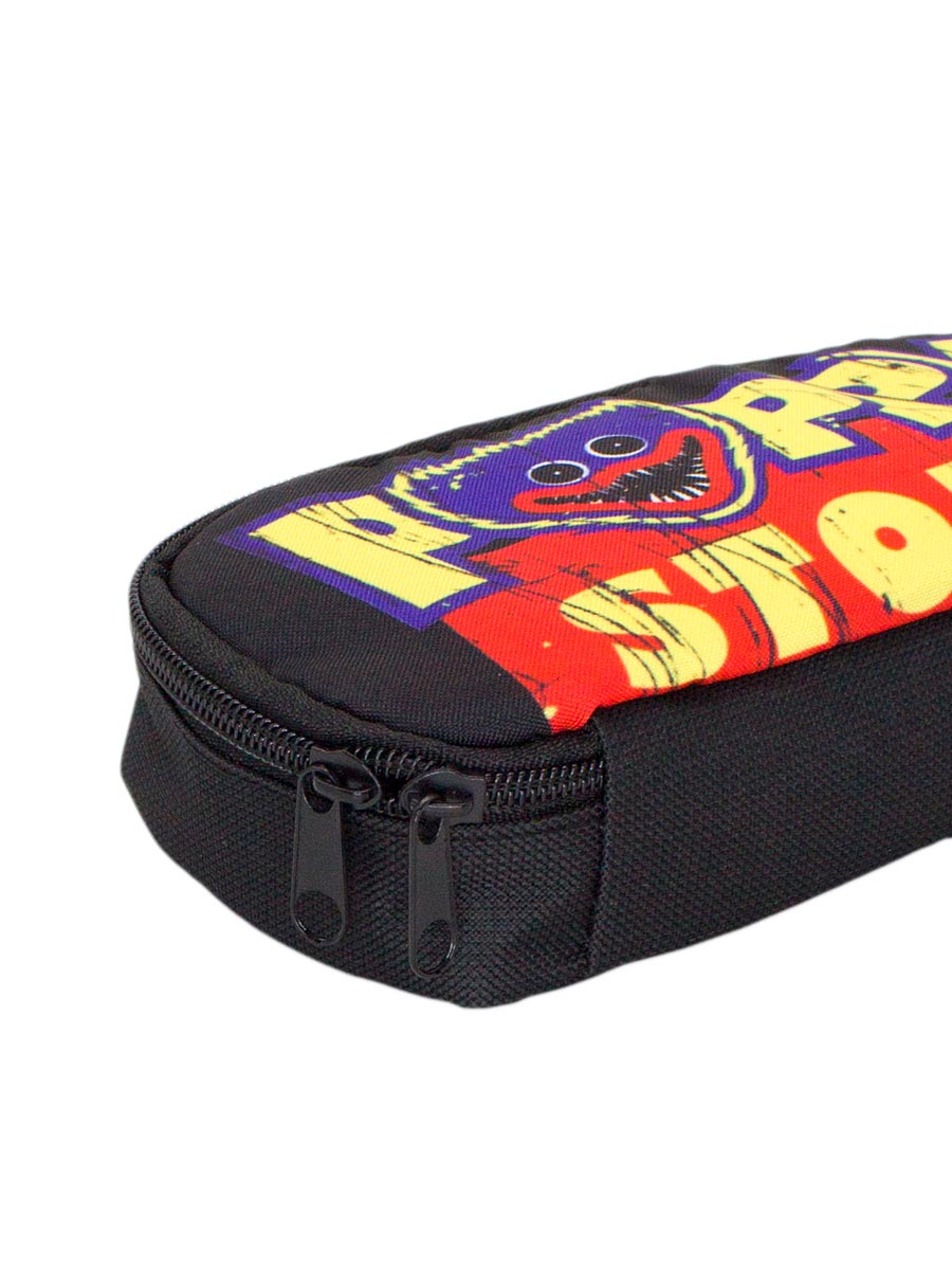 Пенал Huggy Wuggy с одной молнией имеет одно большое отделение, дополнительные кармашки на крышке, вставку - держатель для ручек и карандашей.