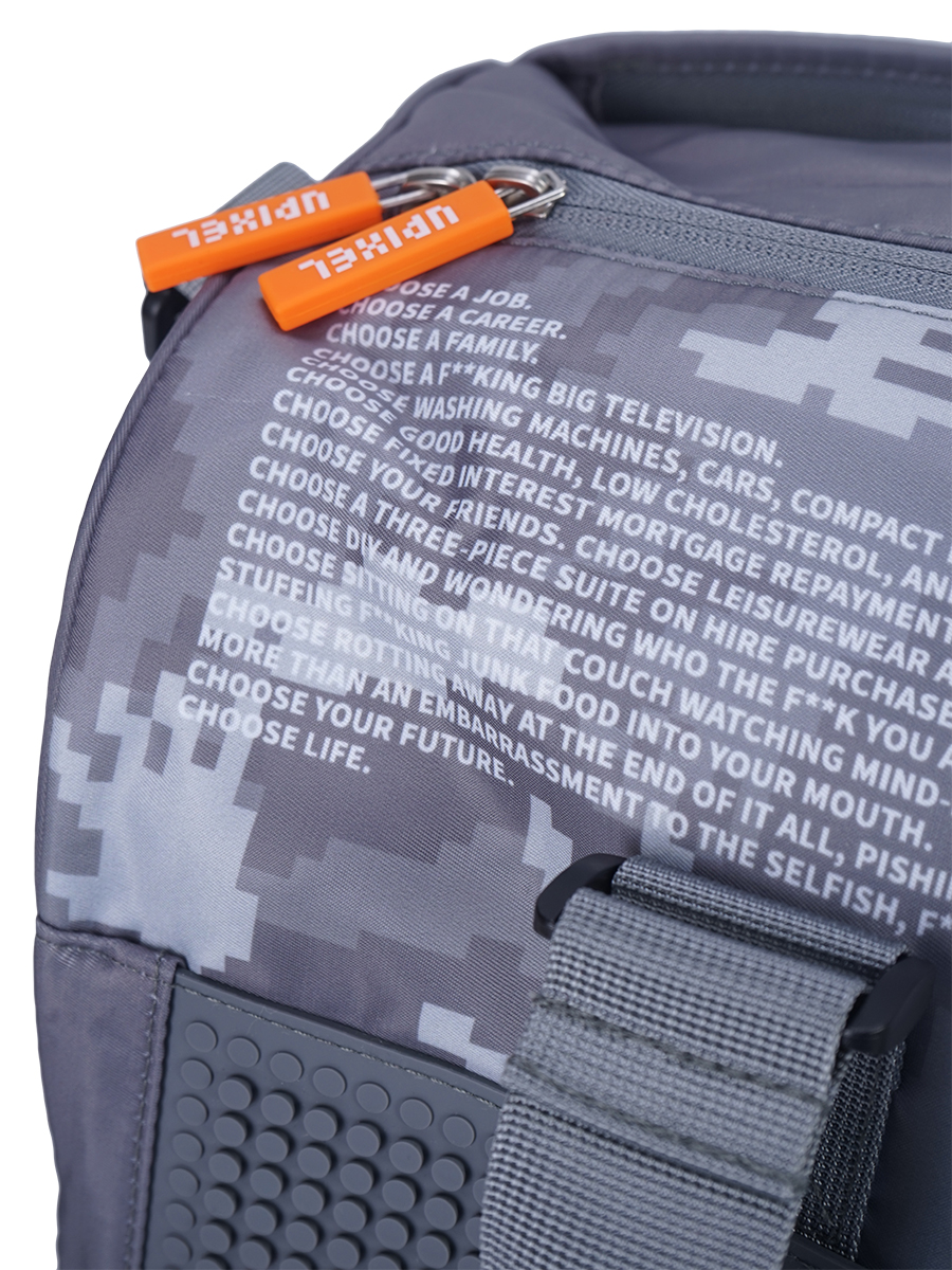 Новая линейка товаров Upixel в категории Fashion! Представлено множество новых аксессуаров, чтобы вы могли пользоваться любимым брендом не только в школе, но и в повседневной жизни! Спортивная сумка - незаменимый аксессуар любителя активной жизни! А спортивная сумка ТМ Upixel это не только удобство и функциональность, но и индивидуальность вашего стиля. В сумке предусмотрены специальные отделения: отдельный карман из силикона для мокрых или грязных вещей после занятий спортом, боковой карман для мелочей вроде карт для фитнес клубов, ключей, телефона, помимо этого, имеется глубокий отсек для обуви, внутри основного отделения сумки есть сеточка на резинке. Аксессуар сделан из водонепроницаемого материала. В комплекте к сумке идут маленькие пиксели (фишки) оранжевые и белые 130 шт. Фирменный буклет с возможными вариантами изображений. Пиксельная панель 57 рядов 20 линий, 1140 точек крепления. Литраж сумки 33 литра.Характеристики